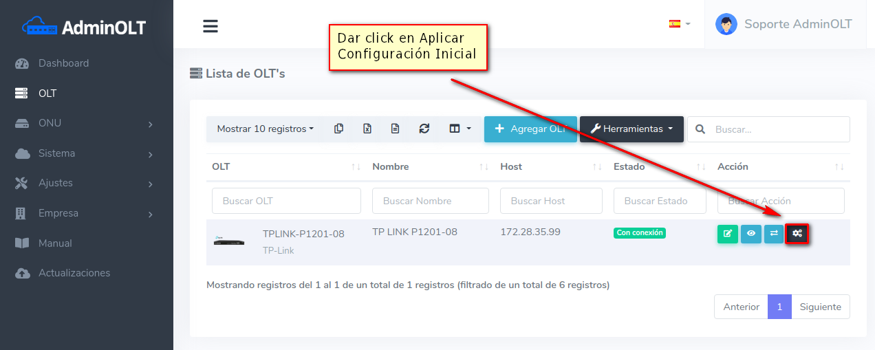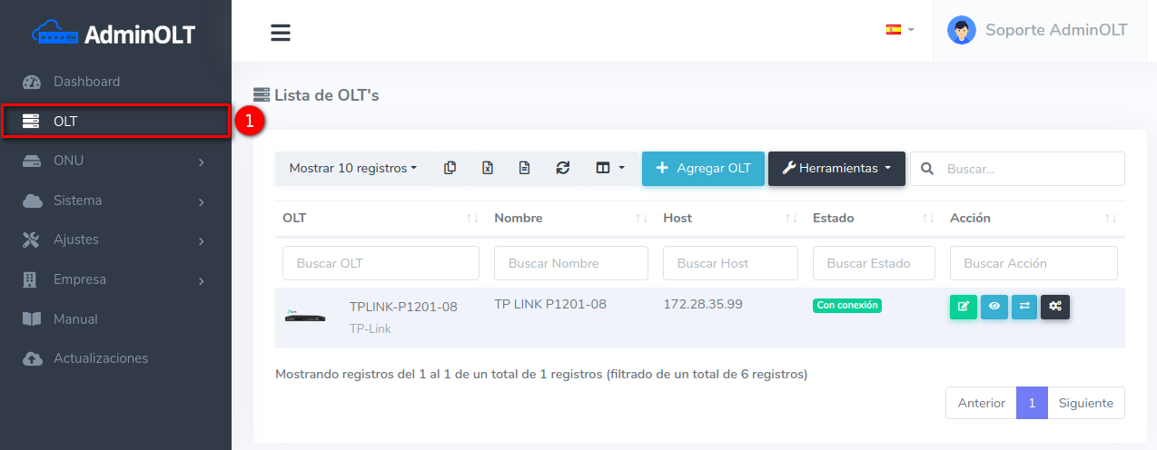1 Ir a Lista de OLT