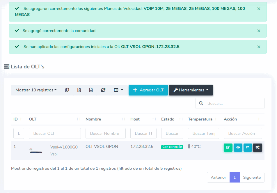 1 Ir a Lista de OLT