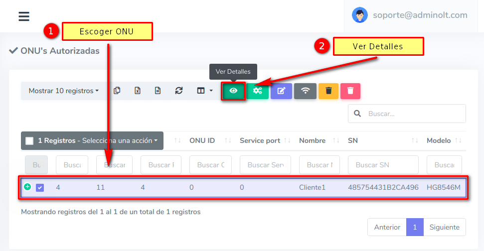 1 Verificar que nuestra ONU tenga señal y este Online