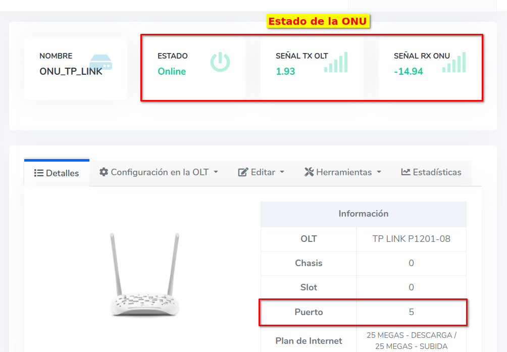 Tome en cuenta que el puerto PON de la OLT debe tener deshabilitados los modos Auto y Adaptive. Si tiene dudas sobre este tema puede consultar el siguiente manual; Configurar Puerto PON