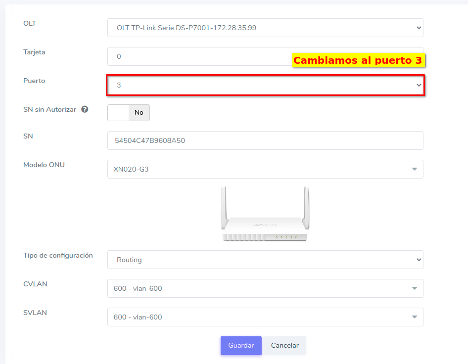 Cambiar ONU TP-Link Serie DS-P7001 de Puerto