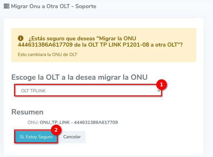 2Seleccionamos la OLT a la que queremos migrar la ONU