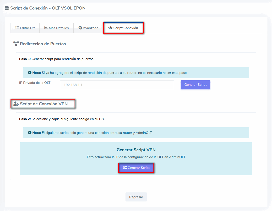 2Nos dirigimos a la pestaña Script Conexión y en el apartado Script de Conexión VPN seleccionamos el botón con la leyenda Generar Script.