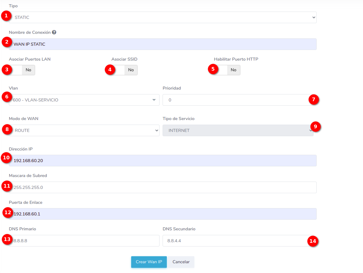- ¿Cómo crear una configuración WAN IP de tipo STATIC?