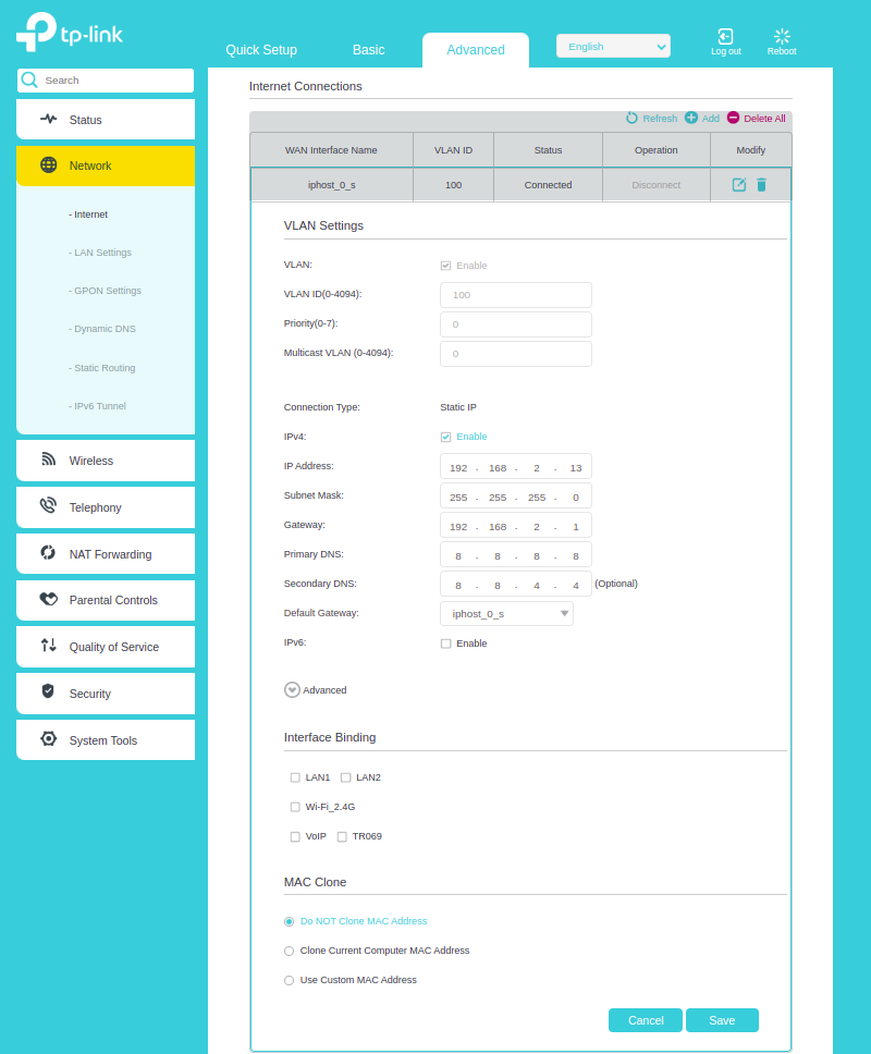 Al entrar a la interfaz de la ONU podremos ver que la configuración WAN se ha generado.