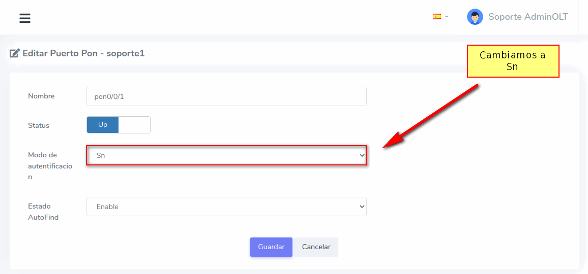 3 Modificamos el Modo de Autentificación del puerto PON