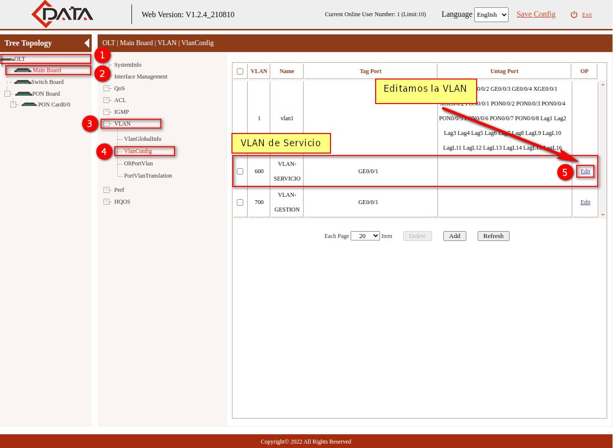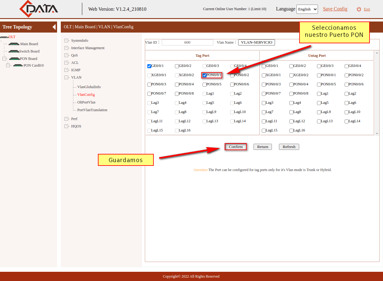 4 Taggear VLAN de Servicio a Puerto PON