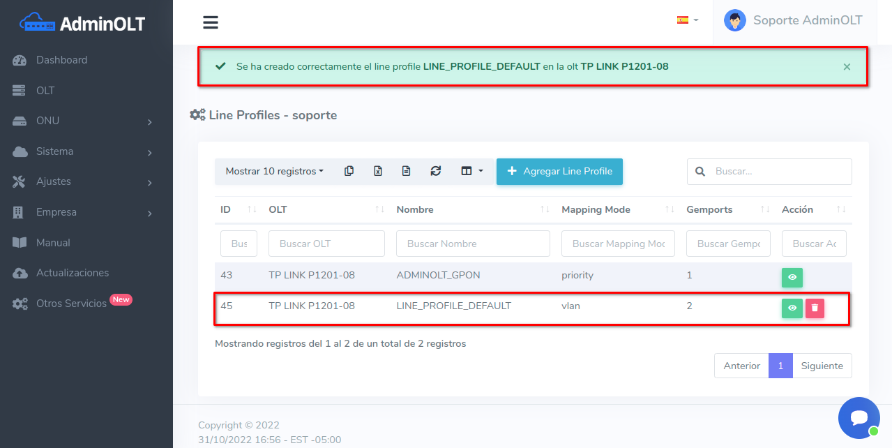 AdminOLT ha integrado una característica para crear configuraciones avanzadas de perfiles de línea, para que los usuarios puedan autorizar sus onus utilizando configuraciones personalizadas y no de la manera predeterminada realizada por AdminOLT.