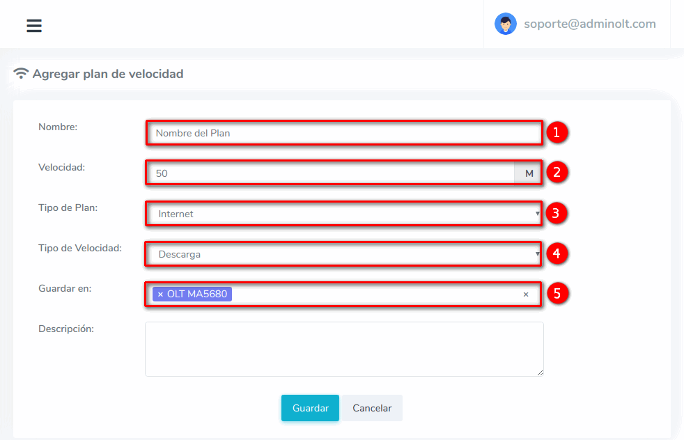 - 2.- Velocidad: Velocidad que deseamos que tenga el plan.