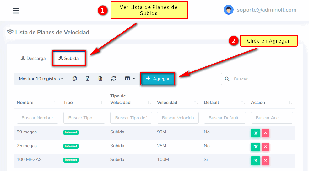 ¿Como creo un Plan de Velocidad de Subida?