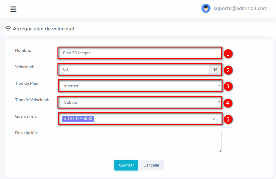 4 Una vez hayamos guardado la información AdminOLT se conectara con la OLT y agregara el Plan de Velocidad