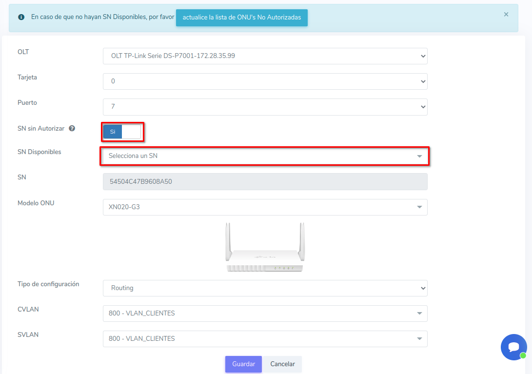 Editar ONU TP-Link Serie DS-P7001 por Numero de Serie (SN)