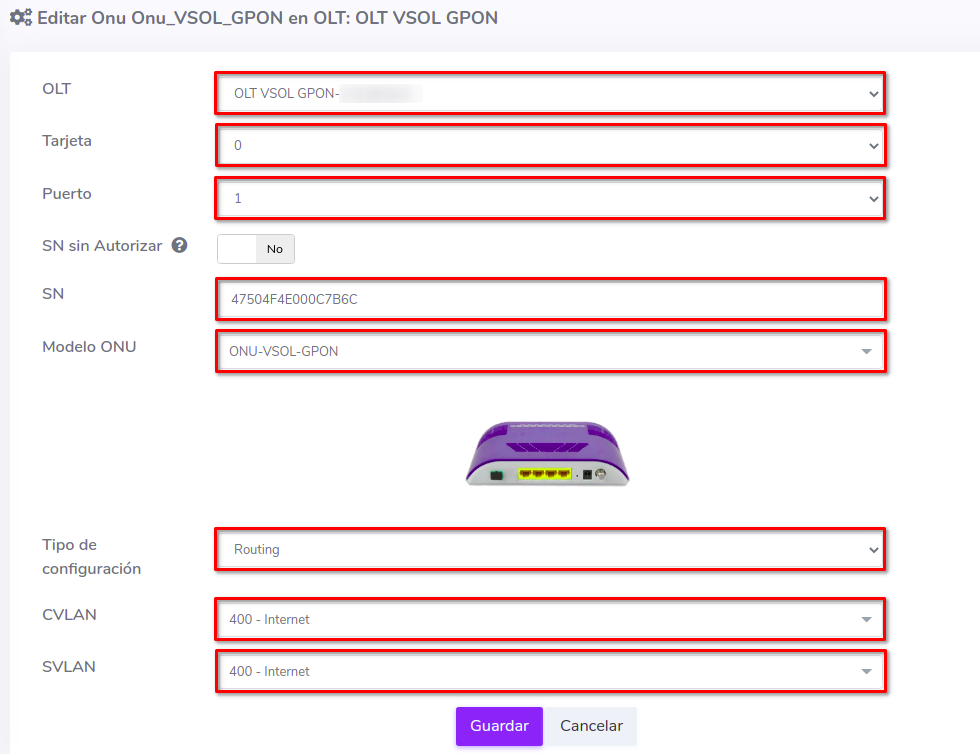 - Editar ONU en AdminOLT desde Lista de ONU's Autorizadas
