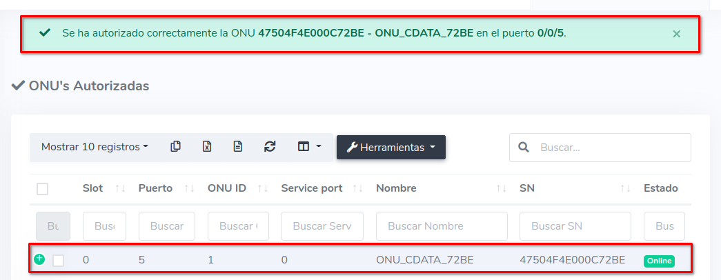 Se resume en la acción de autorizar utilizando el Numero de Serie (SN) de una ONU que no está conectada físicamente a la OLT. De esta forma, al momento de instalación, solo debe conectarse el equipo. Para realizar esta acción siga los siguientes pasos.