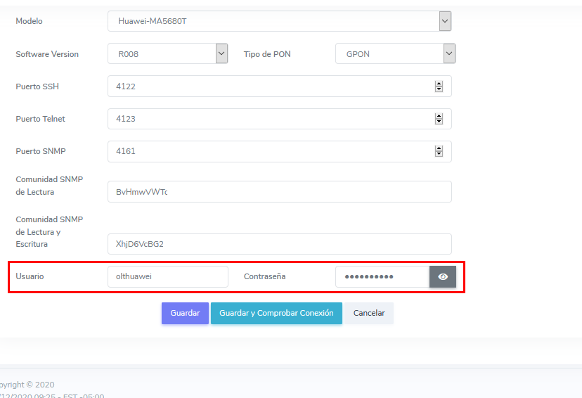 Usuario OLT Huawei