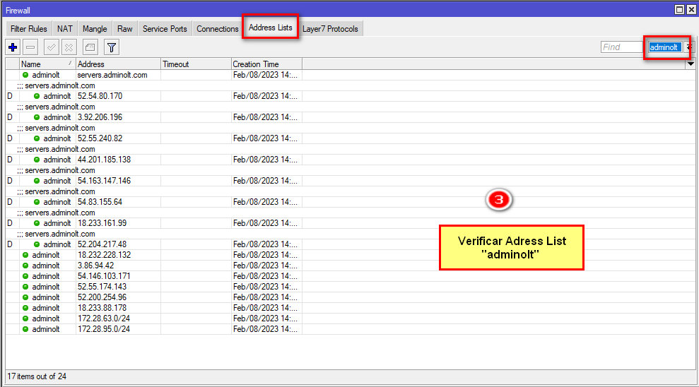 Verificar que tambien esté el Adrress List "adminolt"